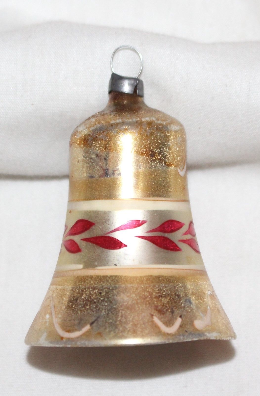 Title (ebay affiliate link): Gold Paneled, Pearl Glass Bell, with glass Clapper. 1920s German glass ornament.