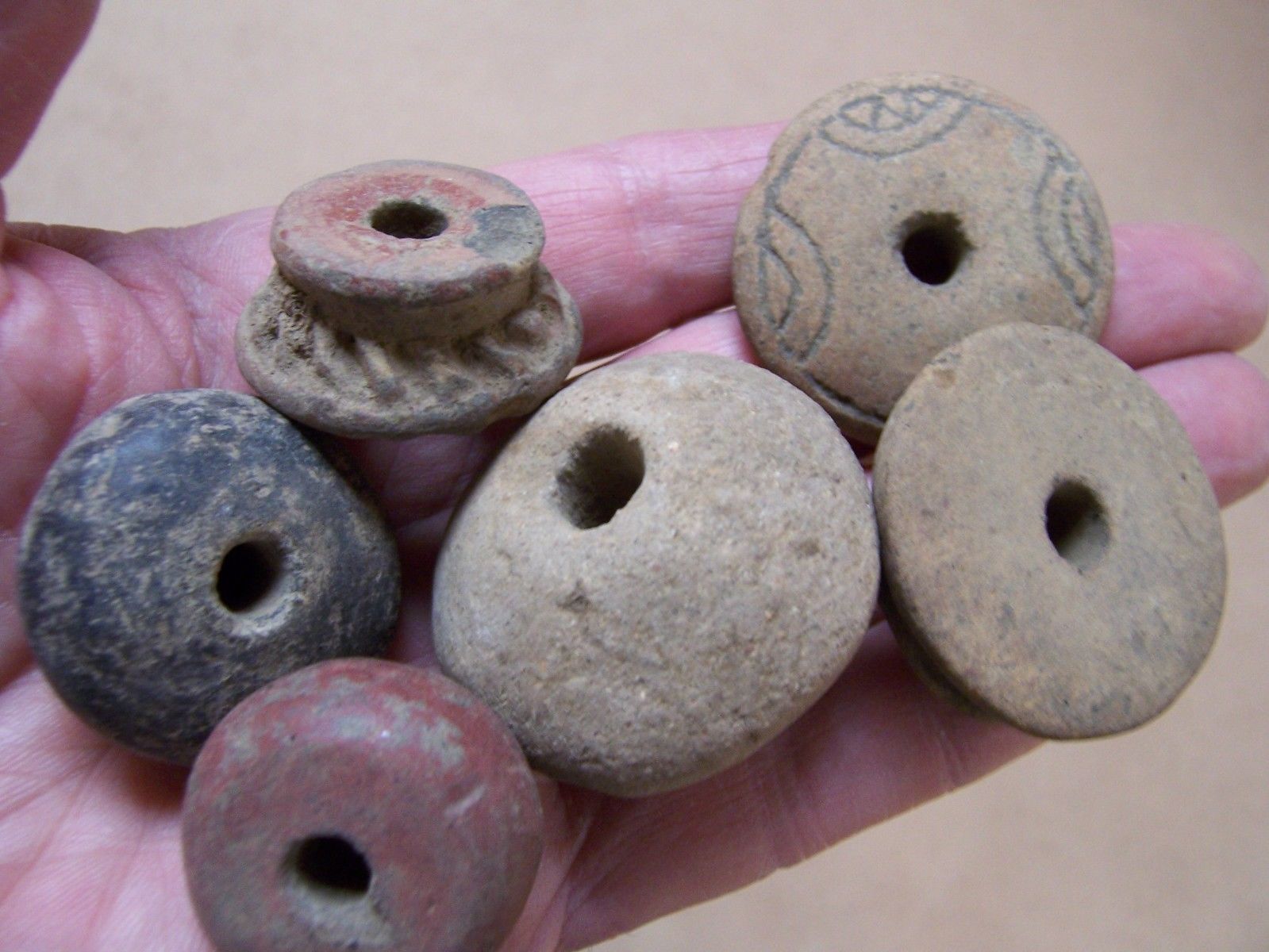 Title (ebay affiliate link): SIX AUTHENTIC PRE-COLUMBIAN MAYAN SPINDLE WHORLS FROM CHICHICASTENANGO GUATEMALA