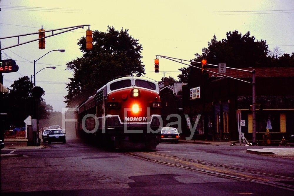 Title (ebay affiliate link): Evening shot of Monon F7 engine No. 83A, Noblesville, Ind., June 20, 1992