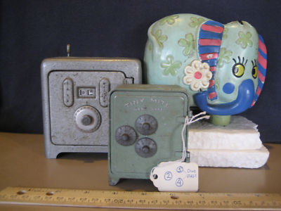 3 COIN BANKS, 2 HEAVY TIN COMBINATION & ELEPHANT BANK
