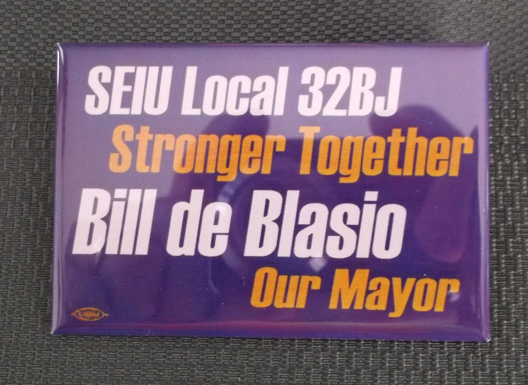 2017 Democrat BILL DE BLASIO 4 New York City Mayor SEIU Local 32BJ Union Button