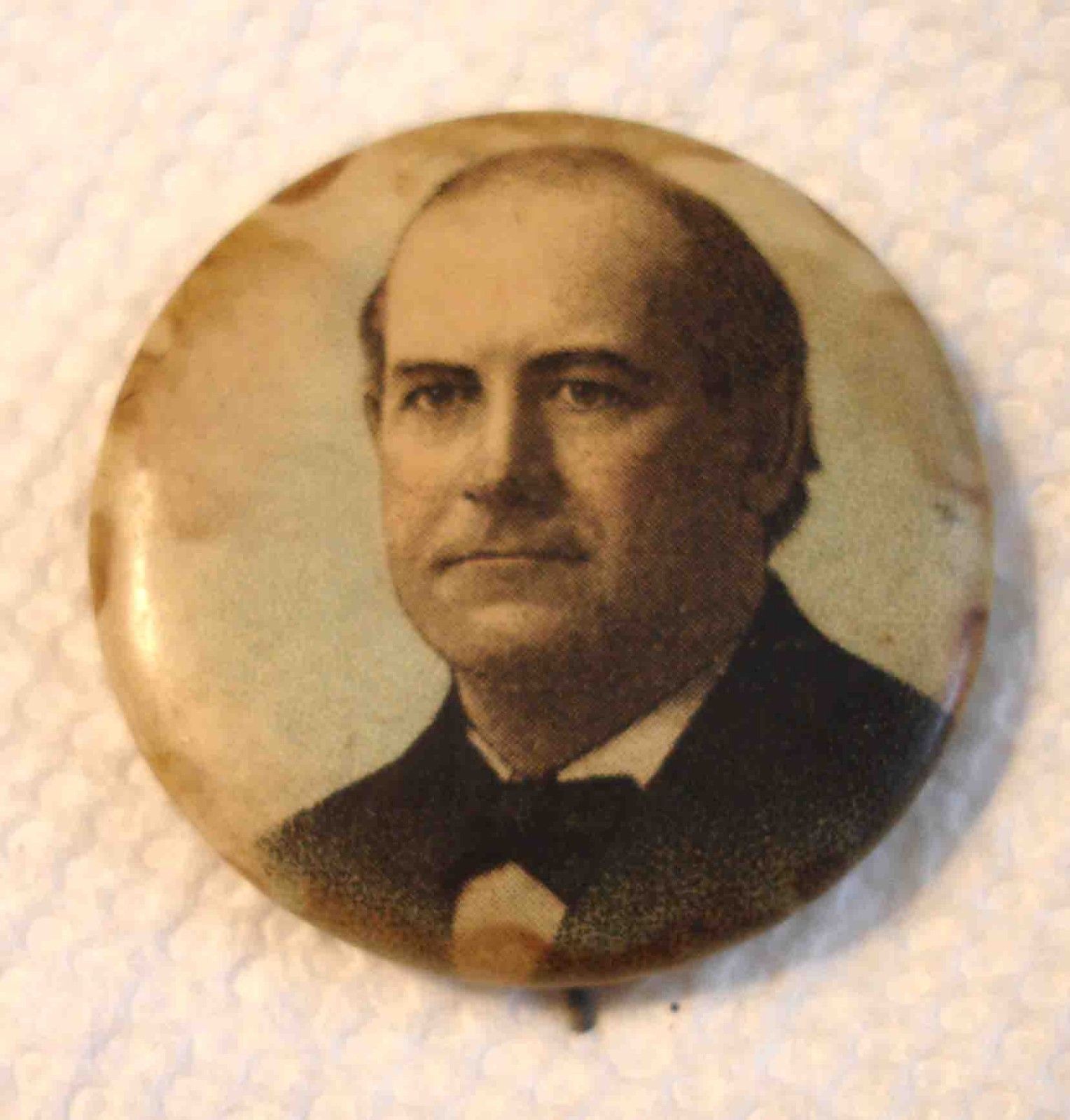 Title (ebay affiliate link): William J.Bryan Real Campaign Political 1.25" Photo Pin 1896 Pat Back Paper