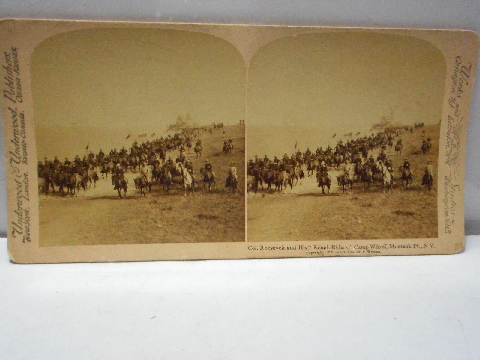 Title (ebay affiliate link): 1898 COL. ROOSEVELT AND HIS ROUGH RIDERS CAMP WIKOFF N.Y. STEREOSCOPIC VIEW CARD