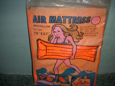 Vintage 60's orange vinyl Air Mattress in original pkg.