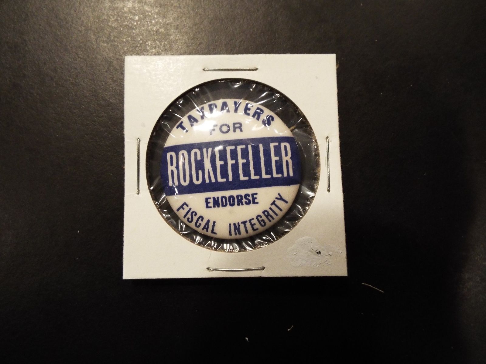 Title (ebay affiliate link): "Taxpayers for Rockefeller Endorse Fiscal Integrity"Presidential Campaign Button