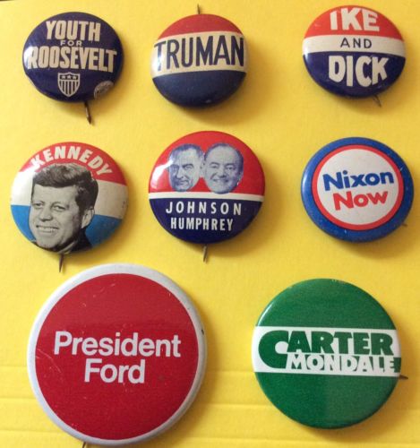 Roosevelt, Truman, Ike, Kennedy, LBJ, Nixon, Ford, Carter Political Buttons Lot
