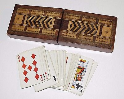 Title (ebay affiliate link): NICE 19TH CENTURY WOODEN CRIBBAGE BOARD GAME BOX WITH PLAYING CARDS