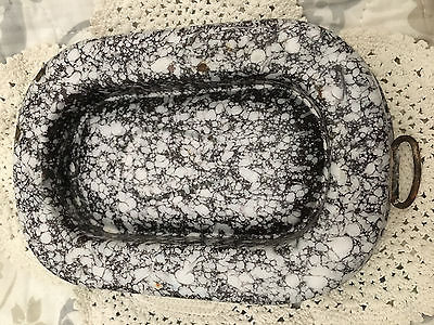 Antique primitive Grey Graniteware Enamelware Heavy SOAP DISH
