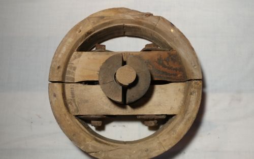 Antique 12" Wooden Mill Belt Gear Wheel Pulley Steampunk Reeves w/ Center Hub