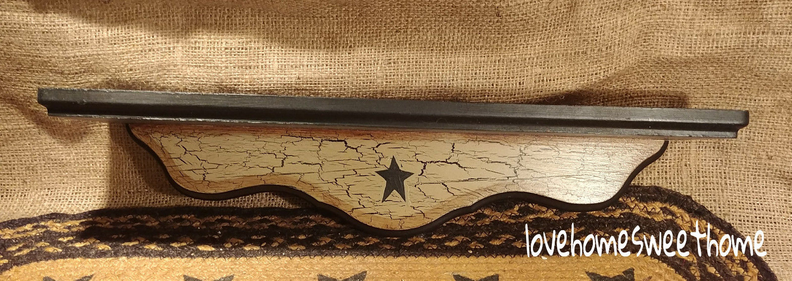 Title (ebay affiliate link): Primitvie Crackle Tan & Black Star Wood Shelf Country Farm Decor