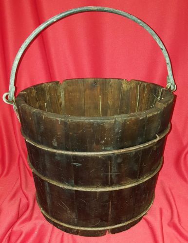 Title (ebay affiliate link): Antique Wood And Iron 1800''s Well Bucket or Barn Bucket AAFA