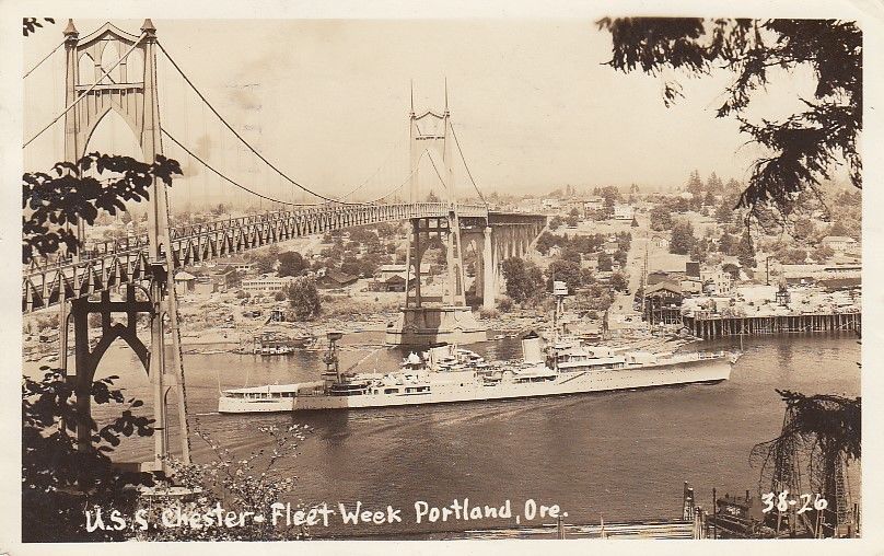 Naval - USS Chester Portland Oregon Fleet Week 1938 RP Postcard
