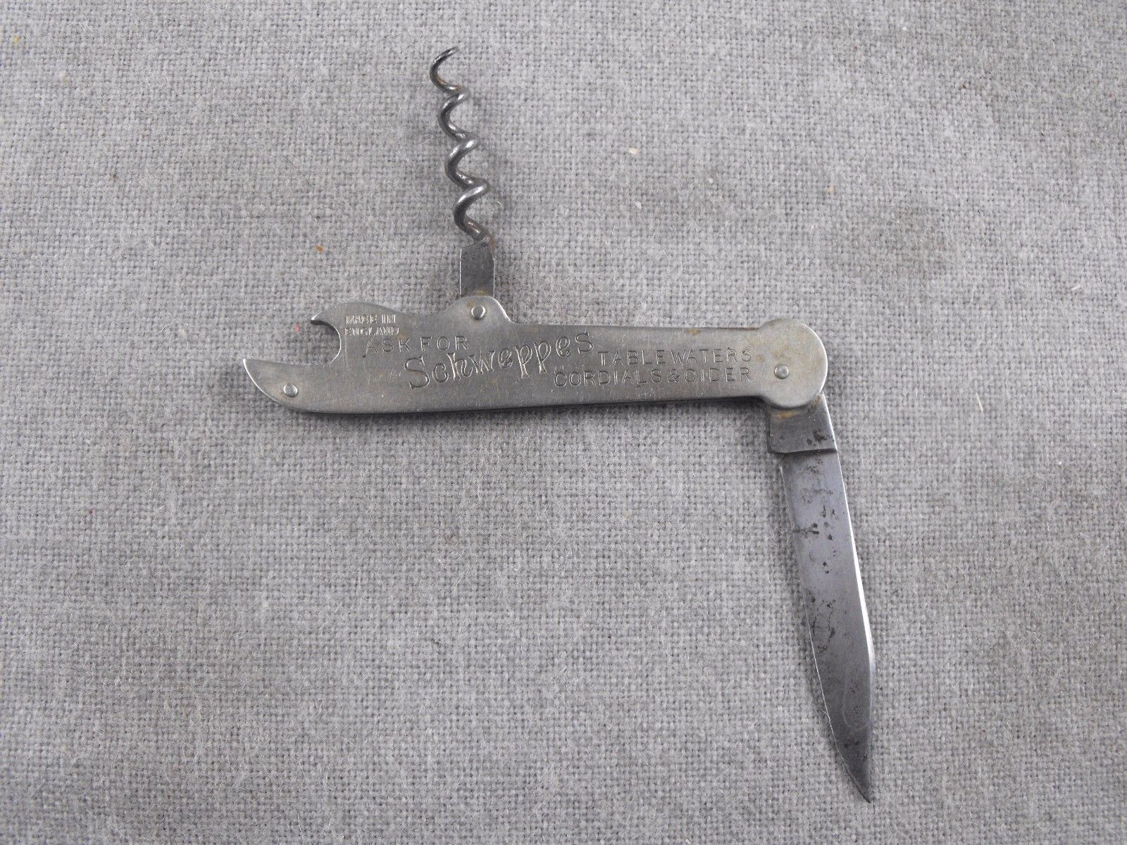 ANTIQUE Schweppes Bottle Opener Cork Screw Pocket Knife William Rogers England