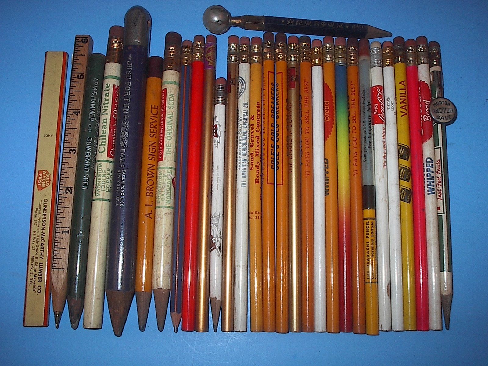 VINTAGE ANTIQUE LOT of 30 OLDER ADVERTISING PENCILS COKE BREAD VANILLA MEDICINE