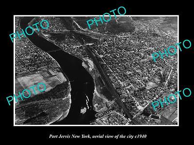 OLD LARGE HISTORIC PHOTO OF PORT JERVIS NEW YORK, AERIAL VIEW OF TOWN c1940 1