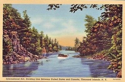 Title (ebay affiliate link): Boat with American flag on International Rift US and Canada Thousand Islands NY