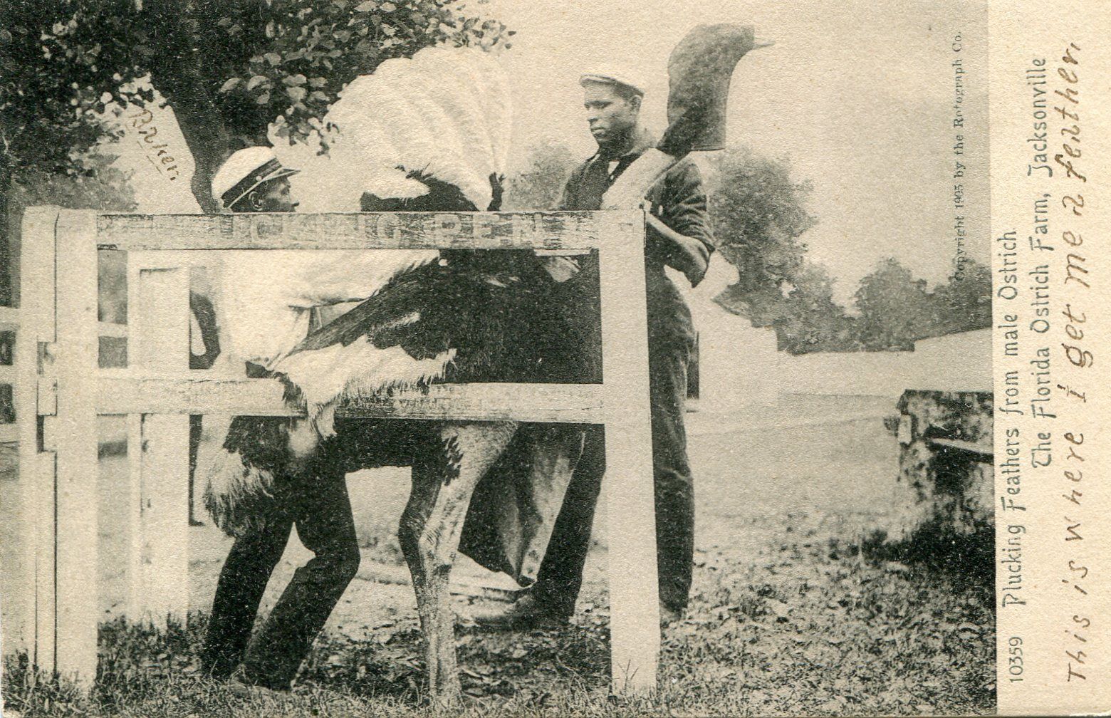Title (ebay affiliate link): Plucking Feathers from male Ostrich, The Florida Ostrich Farm, Jacksonville