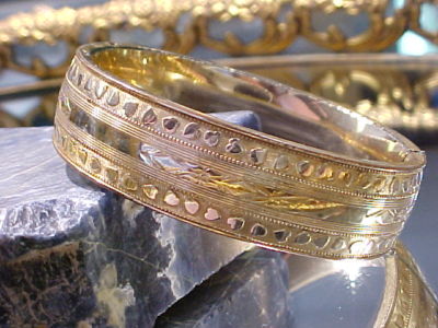 Title (ebay affiliate link): Vintage Antique Gold Filled Wide Bangle Bracelet Hearts