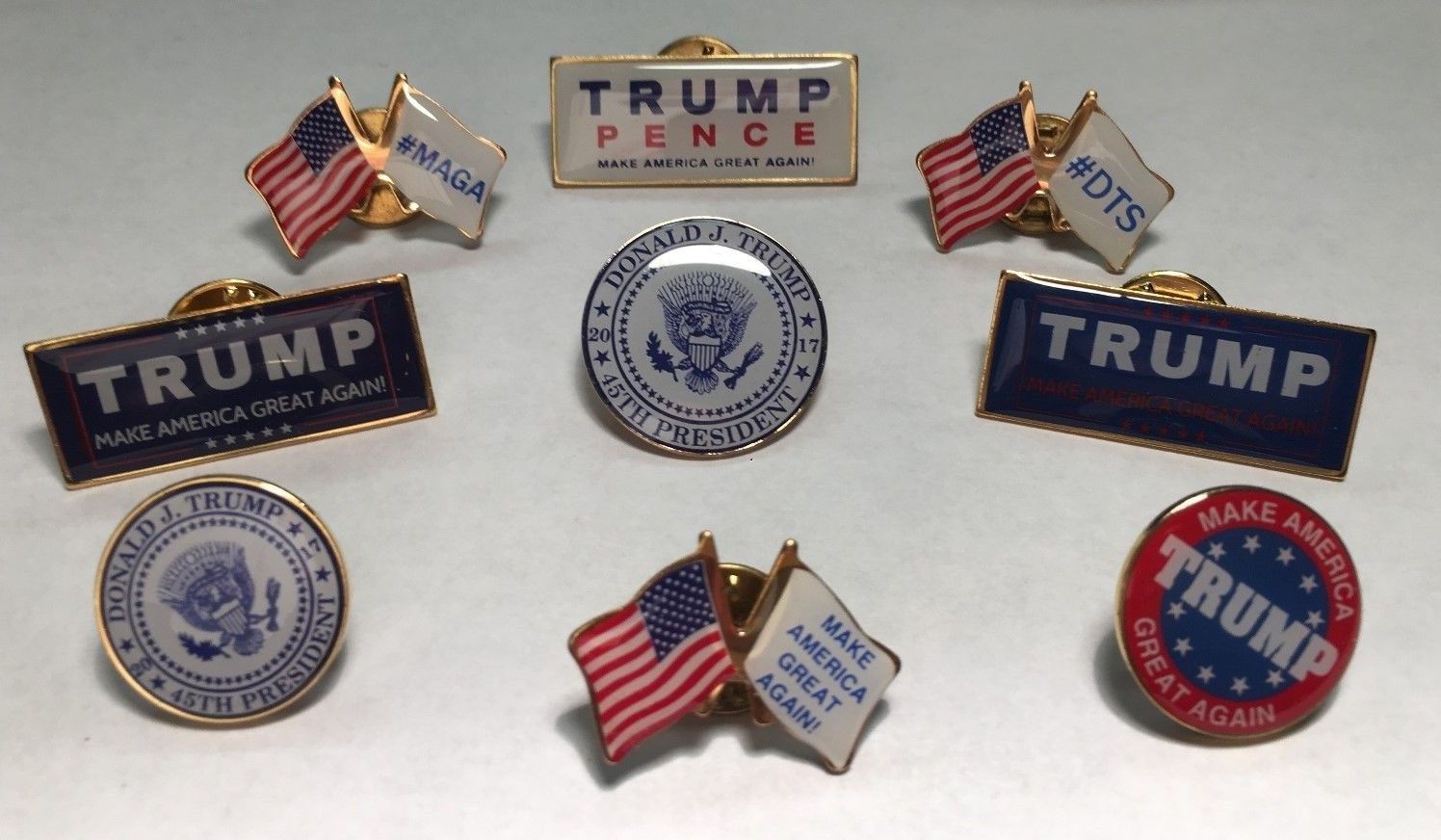 Title (ebay affiliate link): DONALD TRUMP MAKE AMERICA GREAT AGAIN LAPEL PIN LOT PATRIOTIC *MADE IN USA* 45TH
