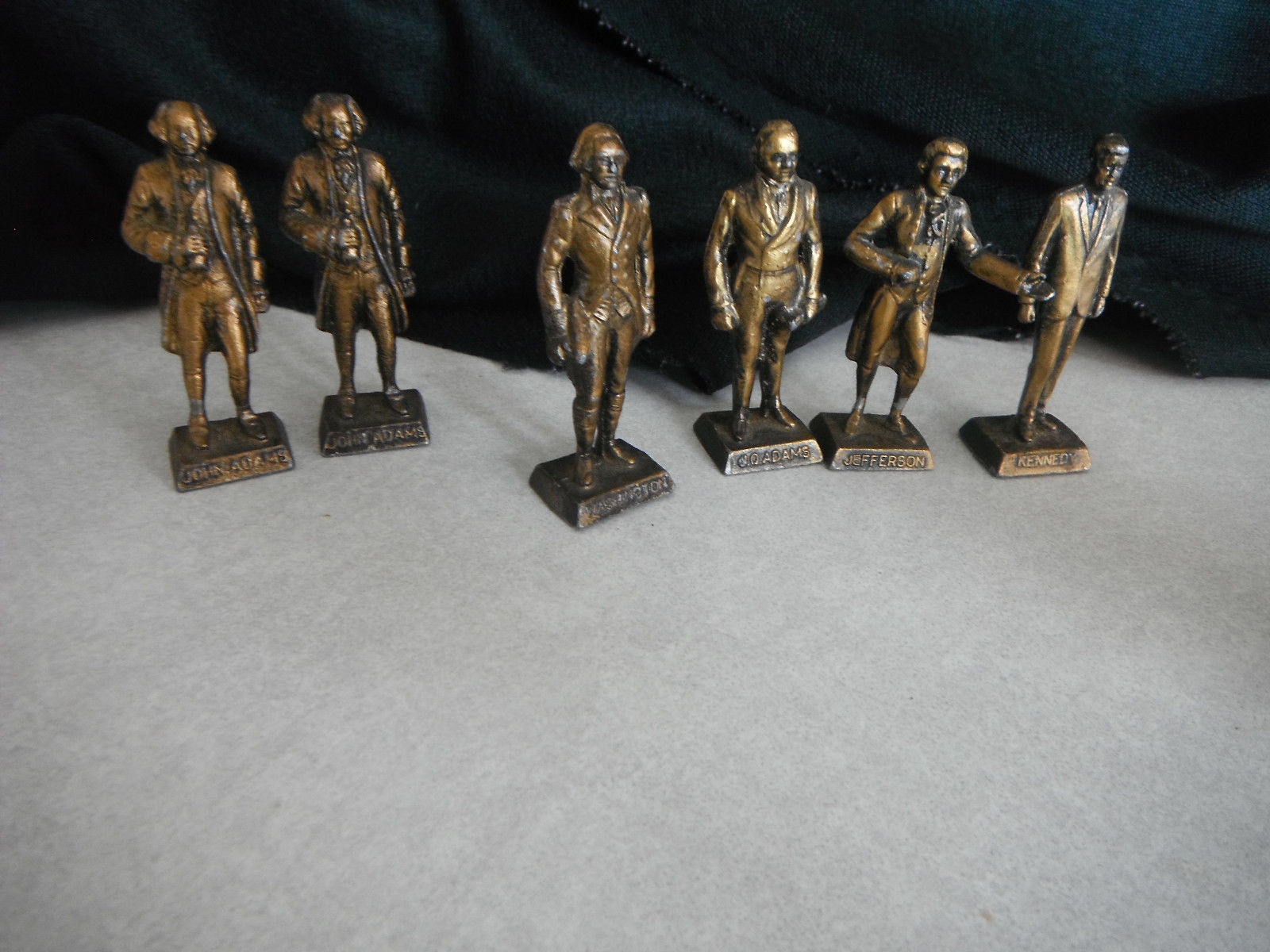 Title (ebay affiliate link): 6 Vintage Metal Statues of Presidents Jefferson Adams Washington Kennedy