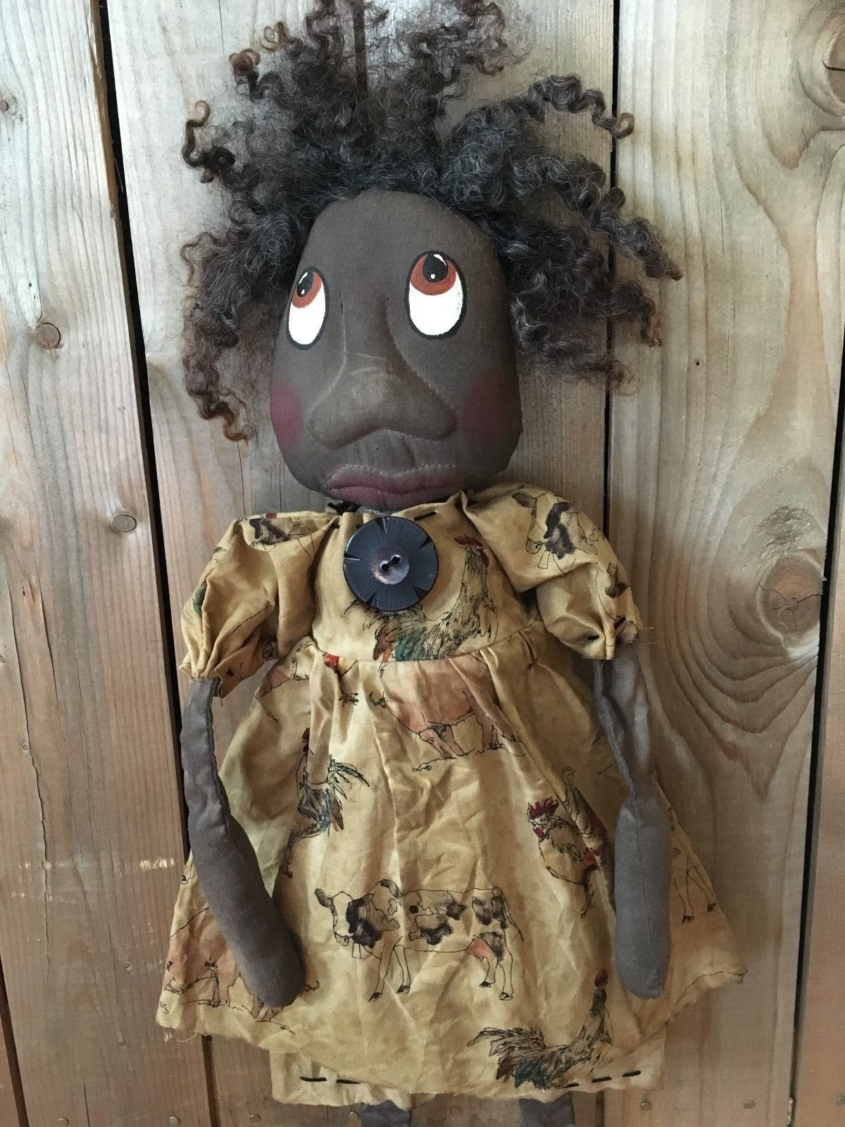 Title (ebay affiliate link): Primitive Black Folk Art Doll Cow Chicken/Rooster Pig Dress Button Mammy