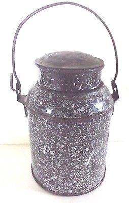 Title (ebay affiliate link): Antique Blue White Speckled Enamel Graniteware Cream Milk Lunch Can Pail Org Lid