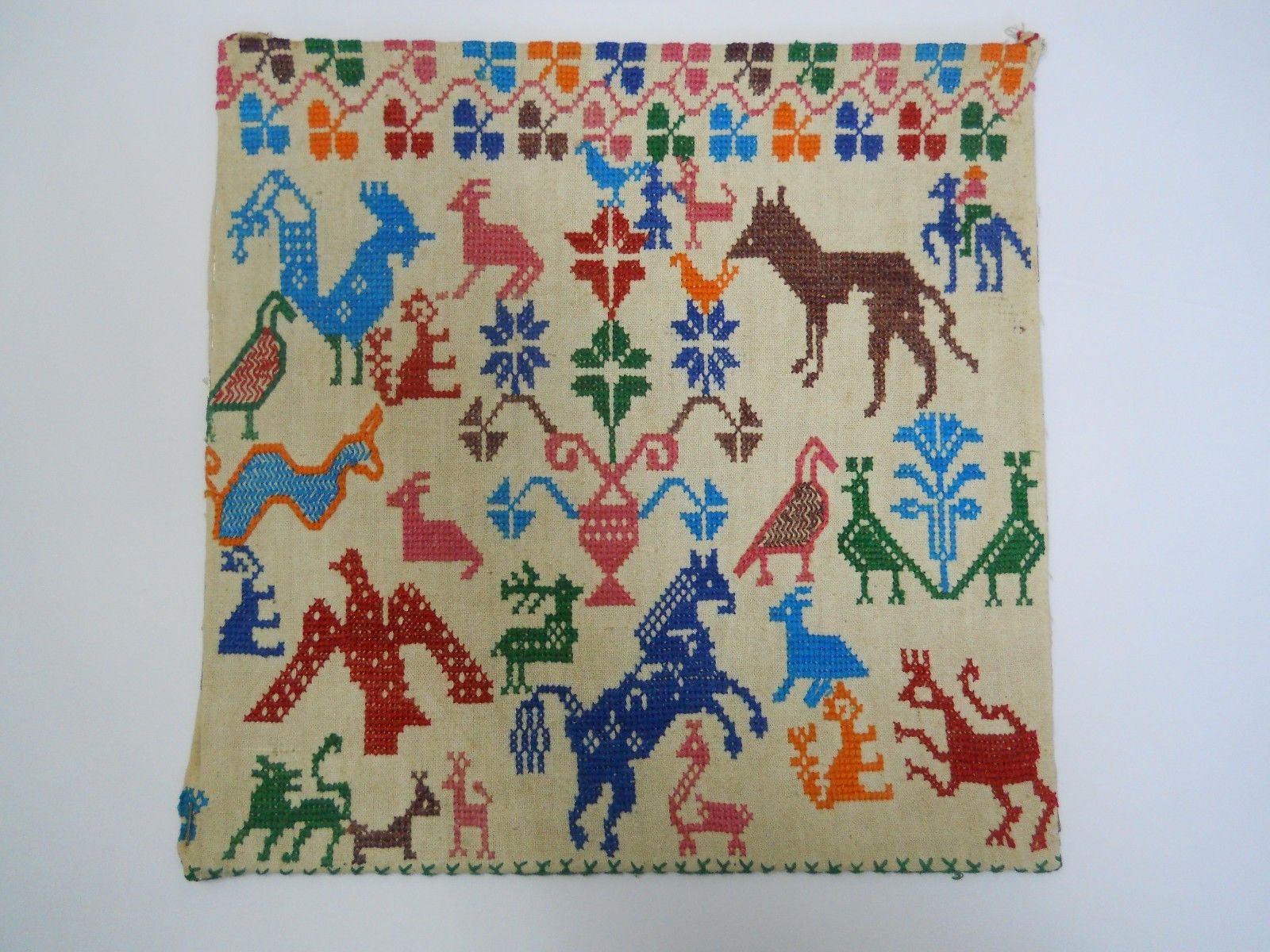 Vintage Antique Primitive Folk Art Mexican Cross Stitch Needlework Sampler