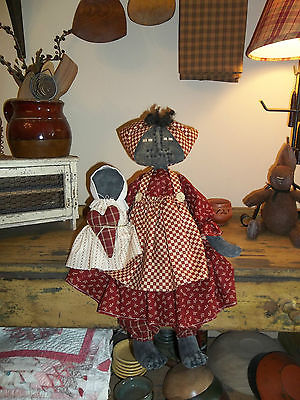 PRIMITIVE RAGGEDY BLACK FOLK ART MAMMY DOLL W/PRAIRIE DOLL ORNIE