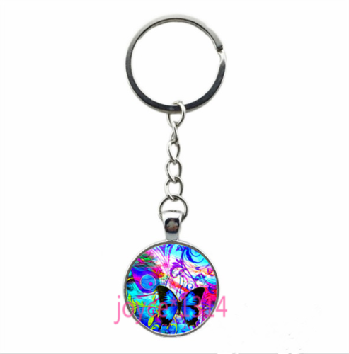 Vintage Butterfly Cabochon Tibetan silver Glass Chain Pendant Key Ring #YHD-7