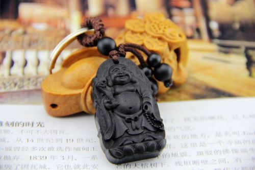 Title (ebay affiliate link): Ebony Wood Carving Chinese Laughing Maitreya Buddha Feng Shui Statue Key Chain