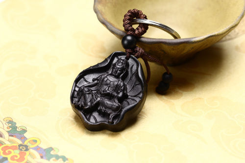 Title (ebay affiliate link): Ebony Wood Carving Chinese Kwan Yin Leaf Feng Shui Statue Key Chain Ring