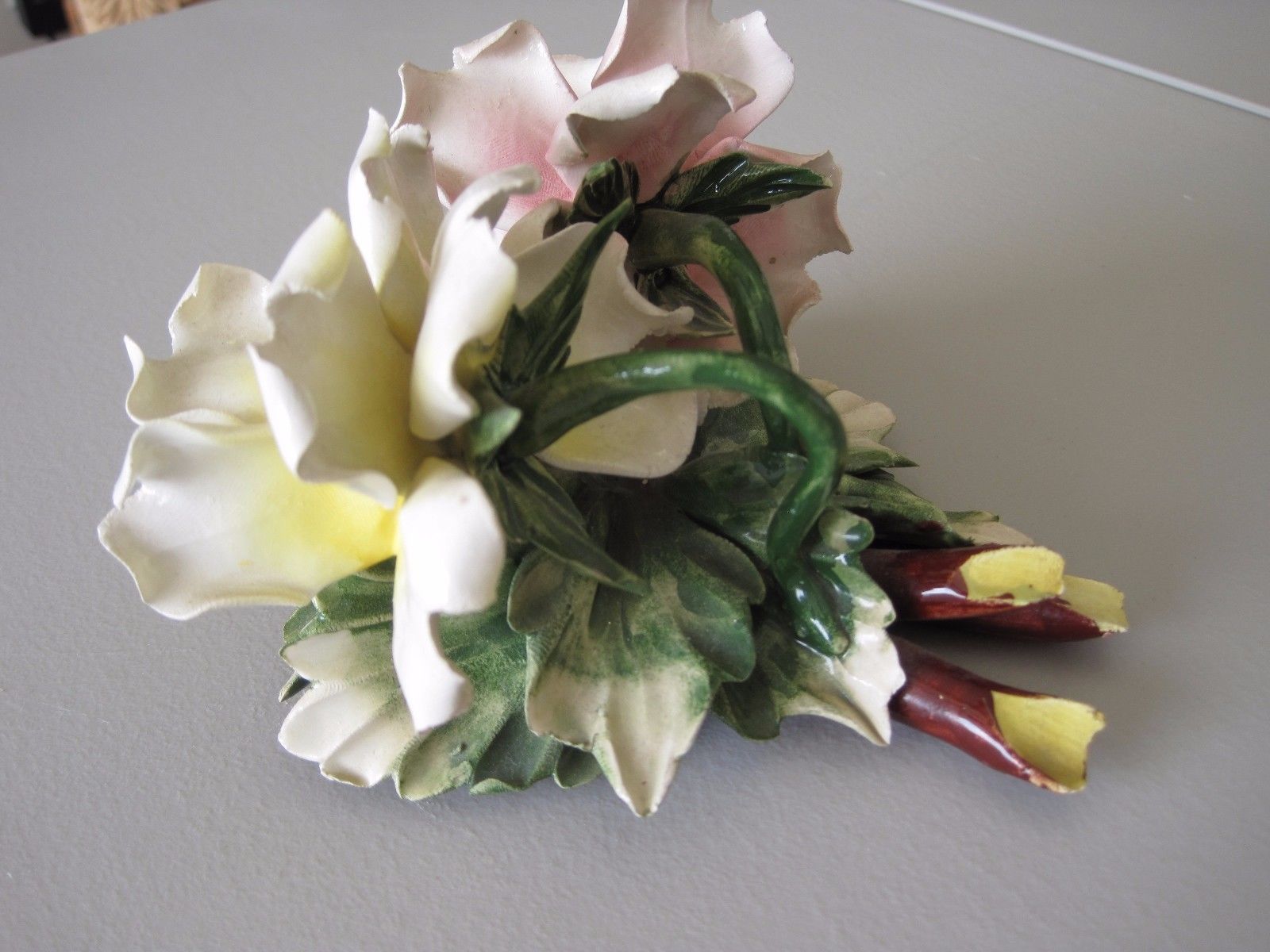Title (ebay affiliate link): Vintage Capodimonte Nouva Pink and Yellow Flowers atop bed of stems
