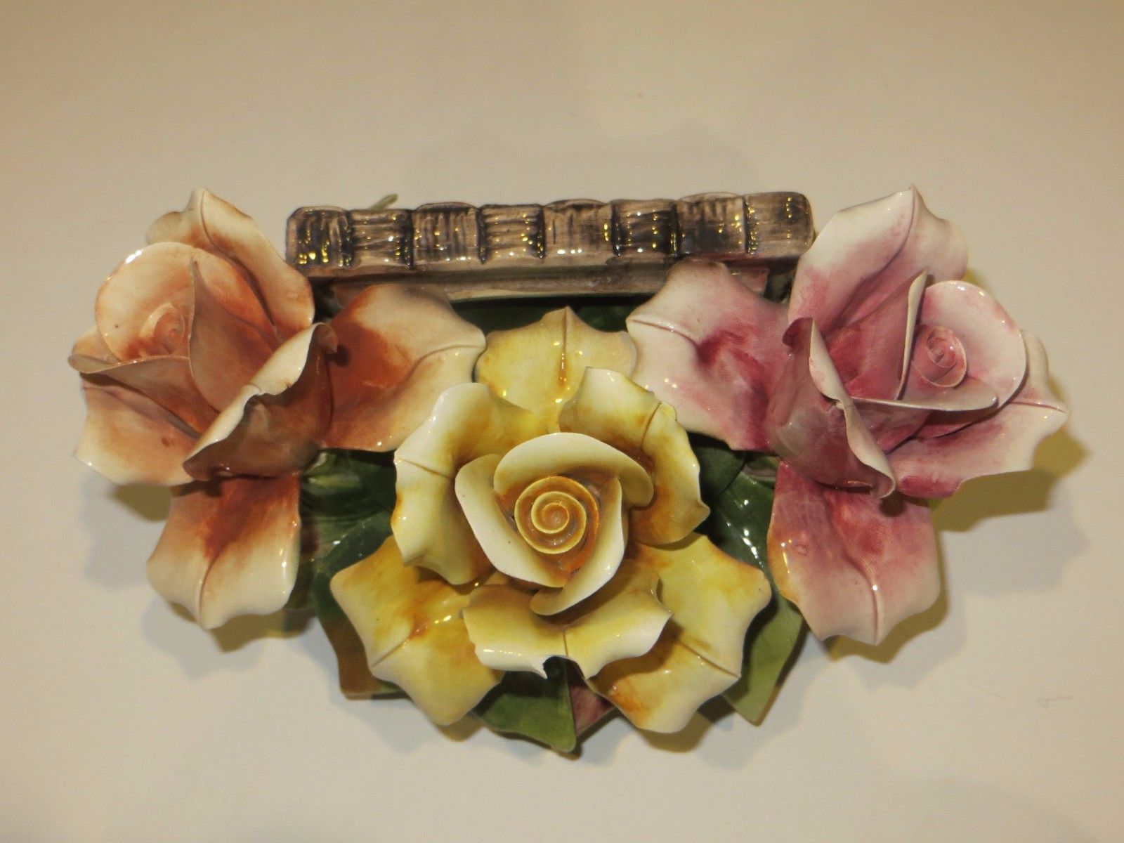 Title (ebay affiliate link): Capodimonte Porcelain Flowers Pink Yellow Orange Vase Basket Centerpiece