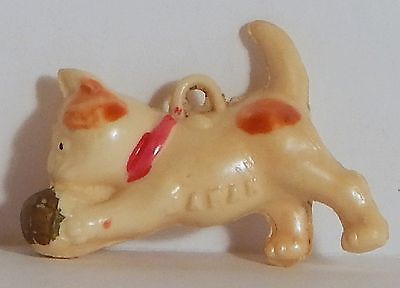 VINTAGE PUFFY CELLULOID KITTY CAT KITTEN W/ BALL CHARM JAPAN RARE!