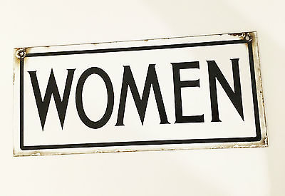 Title (ebay affiliate link): Original Vintage Double-sidied WOMEN Metal Sign ~ 15" x 7"