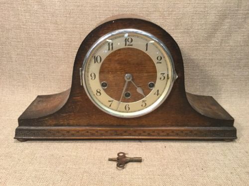 Title (ebay affiliate link): ANTIQUE KIENZLE ART DECO WOODEN GERMAN MANTLE CLOCK W/ Key