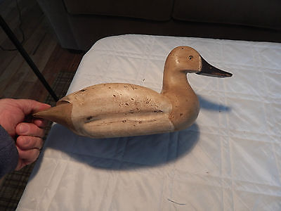 ANTIQUE CANVASBACK HEN DECOY DUCK SIGNED -G.LOWENTHAT ?--GLASS EYES