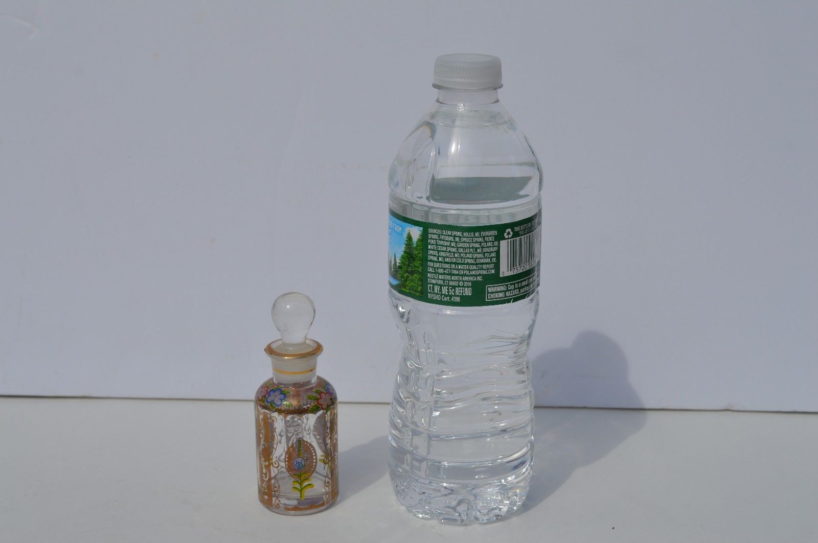 BEAUTIFUL ANTIQUE HAND PAINTED SMALL GLASS PERFUME BOTTLE