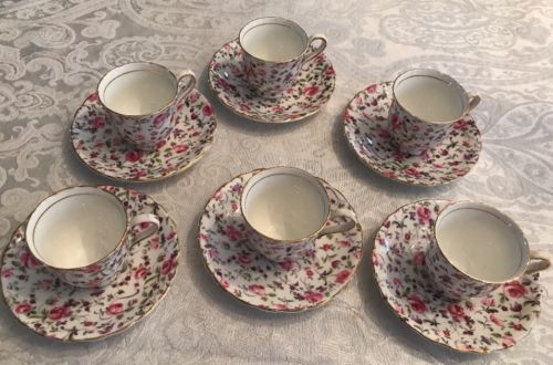 Title (ebay affiliate link): Vintage Stanley Tea Cup Gold Duchess Evelyn Set 6 Demitasse Bone cup saucer #128