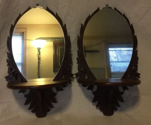Title (ebay affiliate link): 2 pc Wood Hand Carved Mirror Sconce Eastlake Victorian oval shelf ornate Vintage
