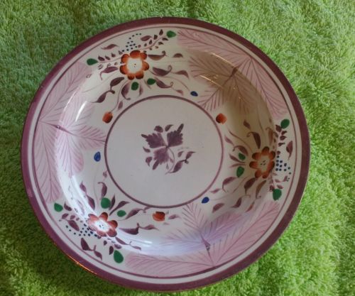 Antique Pink Lustre Lusterware Soft Paste Porcelain Plate, Vintage