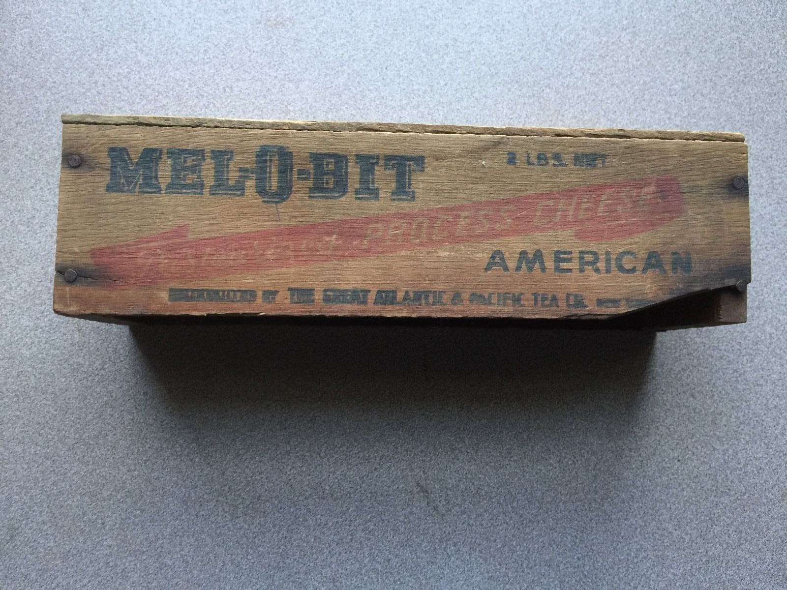 Title (ebay affiliate link): VTG MEL-O-BIT AMERICAN 2 LB BRICK CHEESE CRATE BOX RESTAURANT ART DECOR DISPLAY