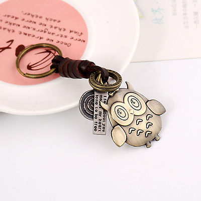 1Pc Vintage Owl Weave Leather Keychain Keyring Key Ring Chain Bag Keyfob Pendant