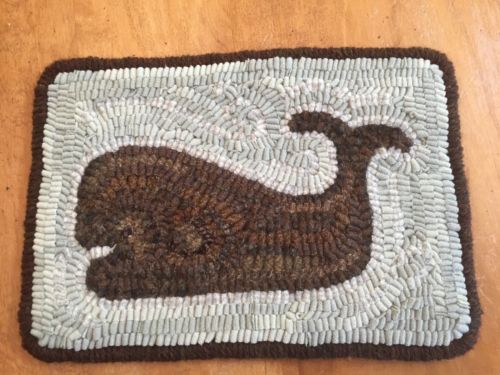 HAND MADE PRIMITIVE HOOKED Rug Mat Whale