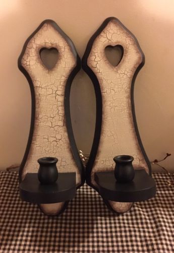 Title (ebay affiliate link): PRIMITIVE CRACKLE CANDLE SCONCE SET WOOD BLACK TAN COUNTRY FARMHOUSE DECOR