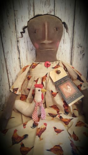 Title (ebay affiliate link): Primitive Black Doll w/ Rooster ~ Farm ~ Chicken ~