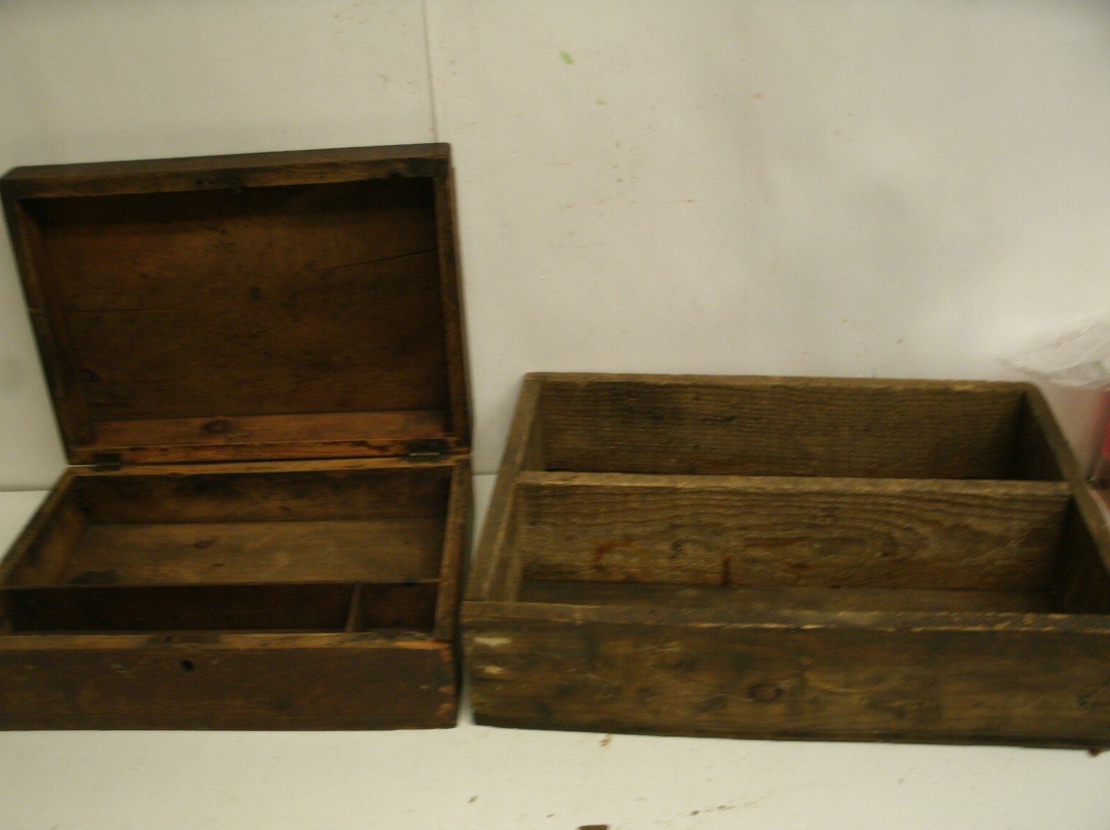 Title (ebay affiliate link): Lot of 2 Vintage Rustic Handmade WOOD Divided boxes