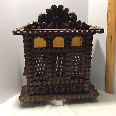 Vintage Tramp Folk Art Cabinet Wood Wall Box Hand Carved What Is It