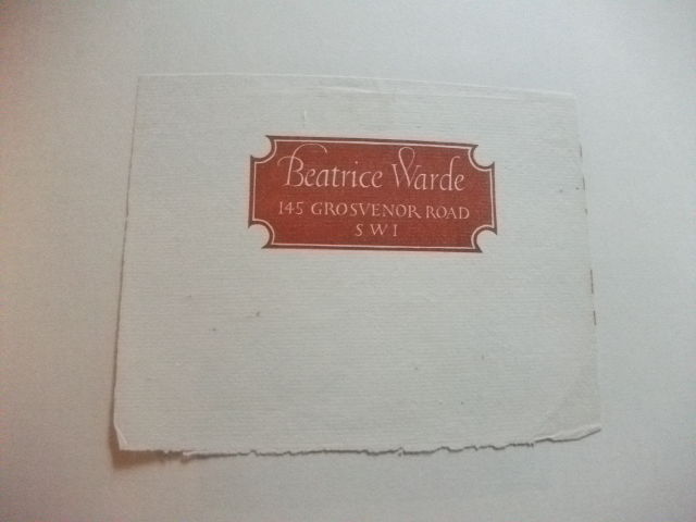 REYNOLDS STONE - Ex Libris label for BEATRICE WARDE.(AMERICAN TYPOGRAPHER)?