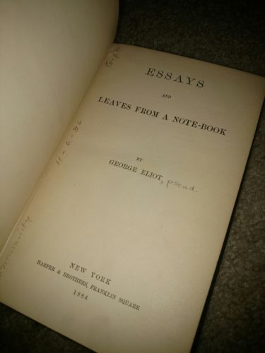 Title (ebay affiliate link): 1884 George Elliots Works- Essays Leaves from a Notebook Antique Vintage Book